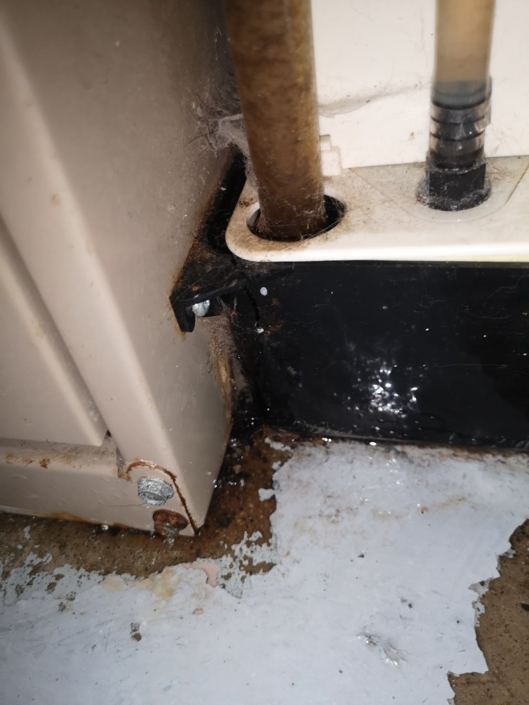 今天接到一个客户电话,说是暖气炉漏水。我正好顺路过去看了一下,问题出在排水泵底盒上。这个排水泵有个塑料底盒,塑料底盒侧面用2个螺丝固定在暖炉上。估计是有人不小心踢到了这个底盒或者受到了其他外力造成底盒破裂漏水。更换排水泵组件解决问题。